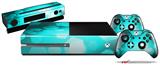 Skin for XBOX One Console Controller Liquid Metal Chrome Neon Teal Vinyl Decal