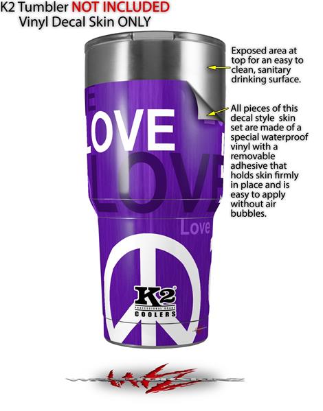 Skin Decal Wrap for K2 Element Tumbler 30oz - Love and Peace Purple (TUMBLER NOT INCLUDED) by WraptorSkinz