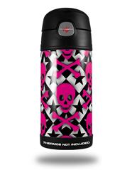 Skin Decal Wrap for Thermos Funtainer 12oz Bottle Pink Skulls and Stars (BOTTLE NOT INCLUDED) by WraptorSkinz