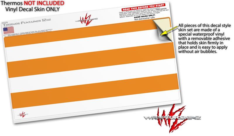 Skin Decal Wrap for Thermos Funtainer 12oz Bottle Psycho Stripes Orange and White (BOTTLE NOT INCLUDED) by WraptorSkinz