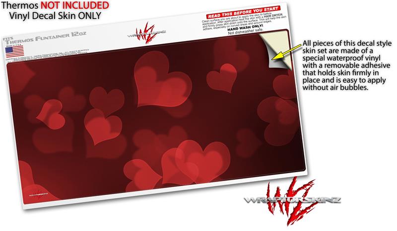Skin Decal Wrap for Thermos Funtainer 12oz Bottle Bokeh Hearts Red (BOTTLE NOT INCLUDED) by WraptorSkinz