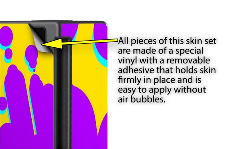 WraptoSkinz™ skins are superb photo quality designs and vibrant colors printed with special Eco-Friendly, fade resistant inks. Our skins are self-adhering flexible vinyl skins that helps prevent scratches. Made of composite, multi-layered commercial grade materials. The bottom layer is made with a special removable adhesive that is easily positioned and applied without air bubbles. We print your design on the bottom layer then bond a professional grade laminate over the entire skin adding a glossy protective finish.