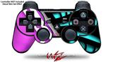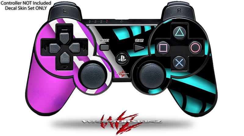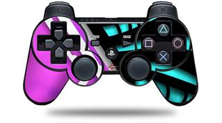 Sony PS3 Controller Decal Style Skin - Black Waves Neon Teal Hot Pink (CONTROLLER NOT INCLUDED)