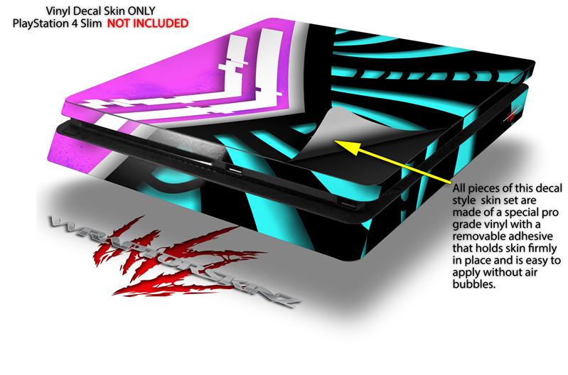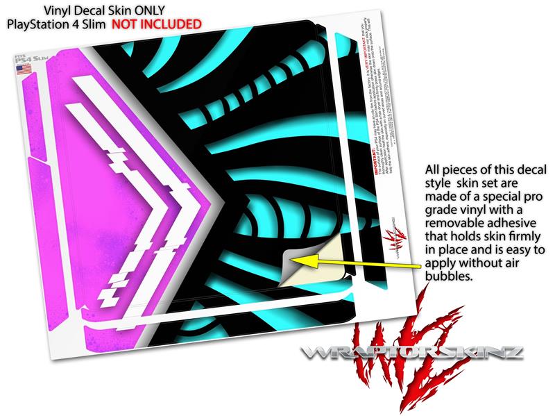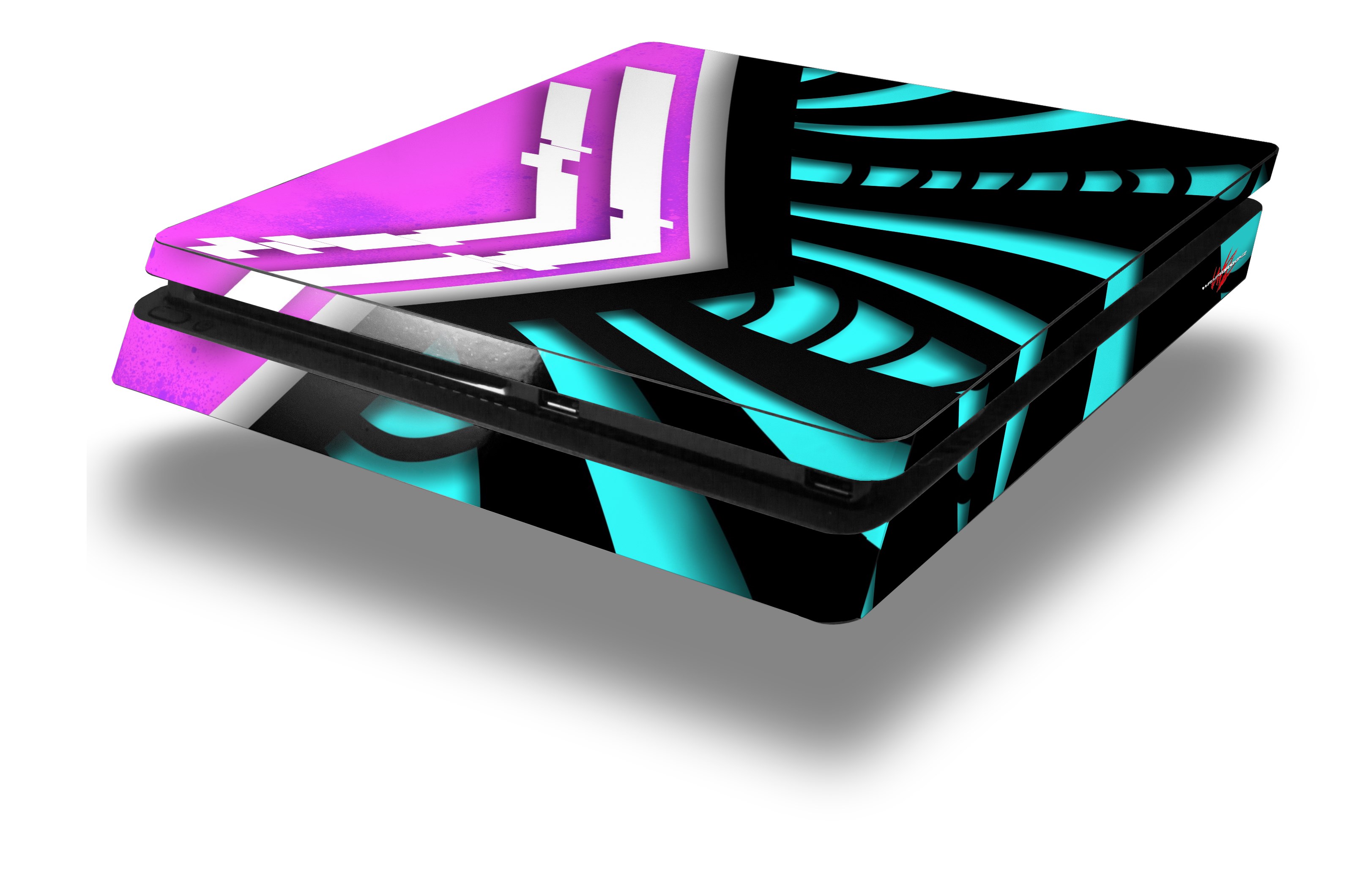 Vinyl Decal Skin Wrap compatible with Sony PlayStation 4 Slim Console Black Waves Neon Teal Hot Pink (PS4 NOT INCLUDED)