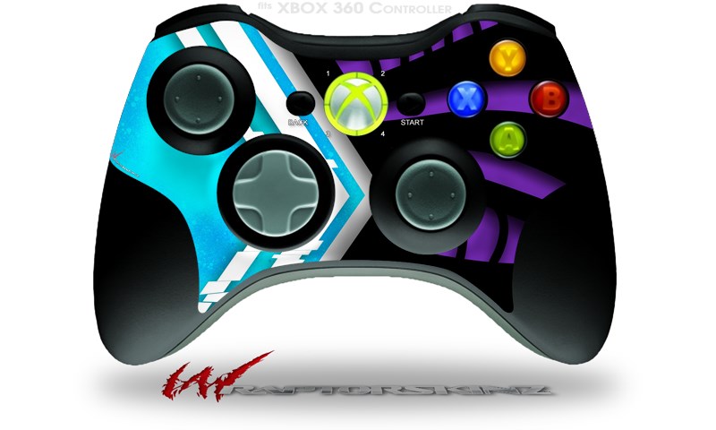 XBOX 360 Wireless Controller Decal Style Skin - Black Waves Neon Teal Purple (CONTROLLER NOT INCLUDED)