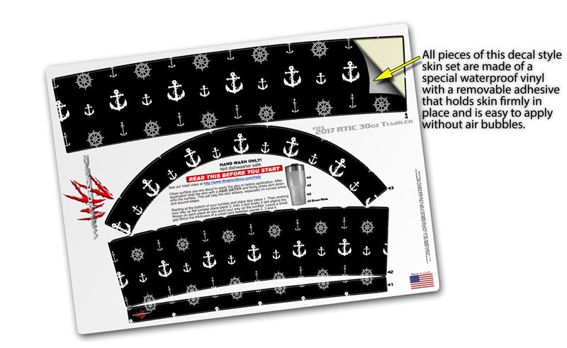 WraptorSkinz Skin Wrap compatible with 2017 and newer RTIC Tumblers 30oz Nautical Anchors Away 02 Black (TUMBLER NOT INCLUDED)