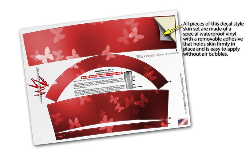 WraptorSkinz Skin Wrap compatible with 2017 and newer RTIC Tumblers 30oz Bokeh Butterflies Red (TUMBLER NOT INCLUDED)