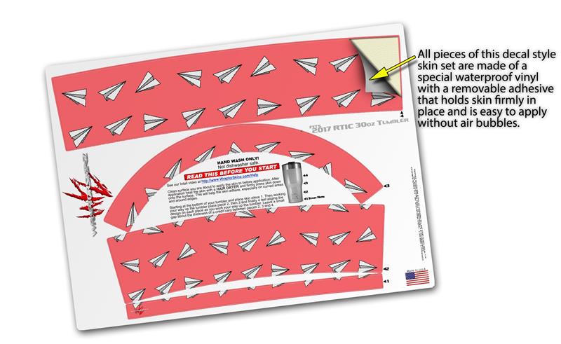WraptorSkinz Skin Wrap compatible with 2017 and newer RTIC Tumblers 30oz Paper Planes Coral (TUMBLER NOT INCLUDED)