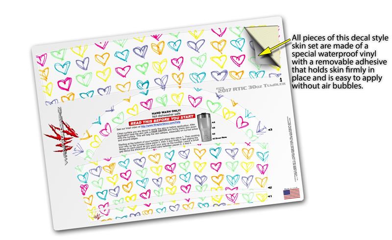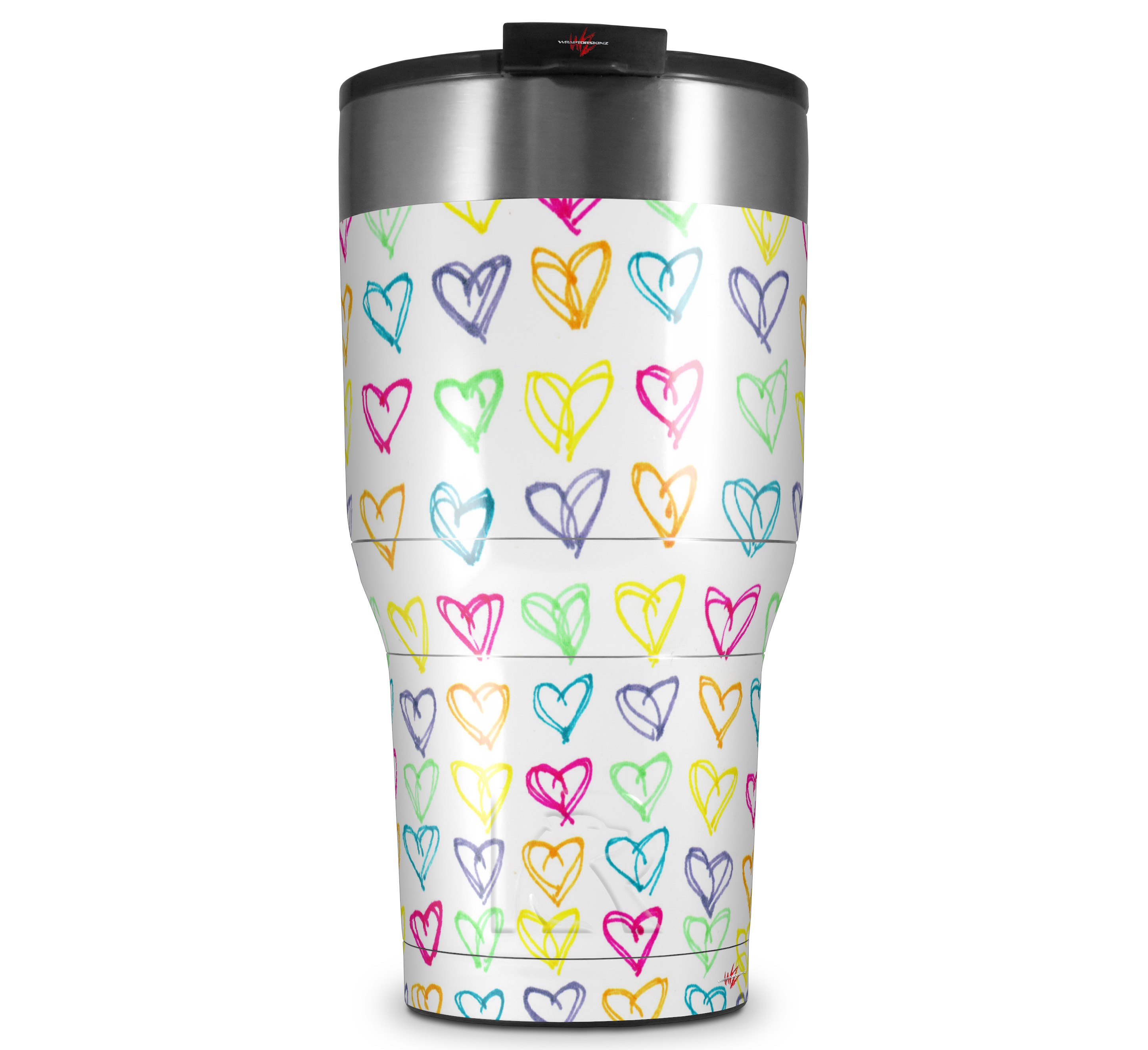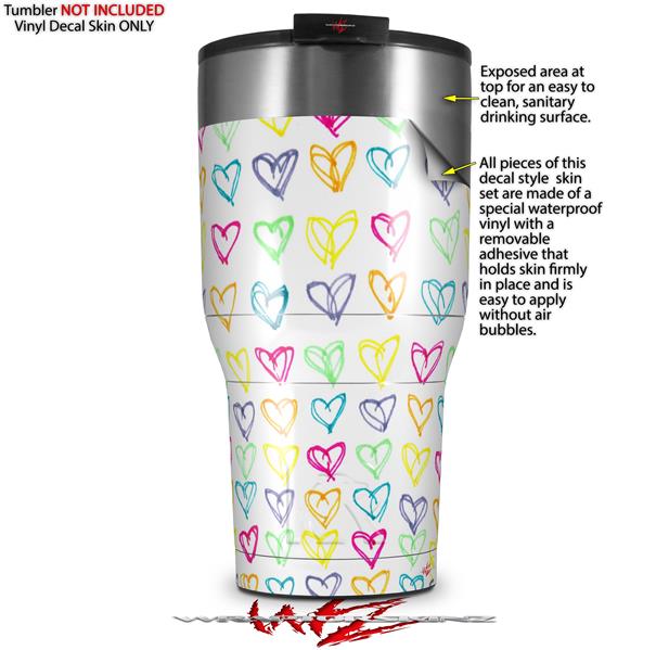 WraptorSkinz Skin Wrap compatible with 2017 and newer RTIC Tumblers 30oz Kearas Hearts White (TUMBLER NOT INCLUDED)