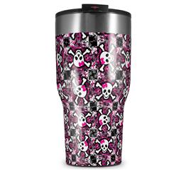 WraptorSkinz Skin Wrap compatible with 2017 and newer RTIC Tumblers 30oz Splatter Girly Skull Pink (TUMBLER NOT INCLUDED)