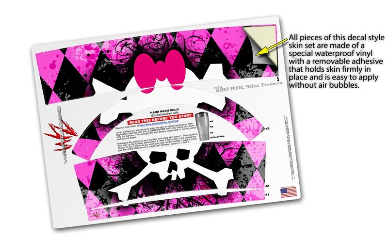 WraptorSkinz Skin Wrap compatible with 2017 and newer RTIC Tumblers 30oz Pink Diamond Skull (TUMBLER NOT INCLUDED)