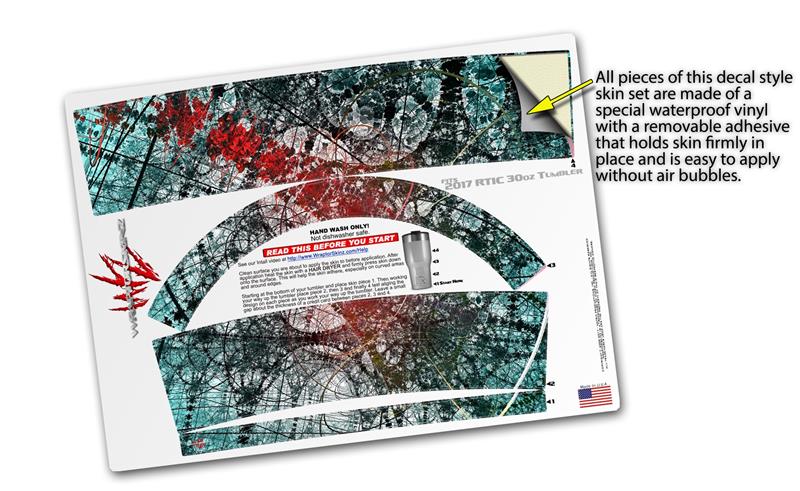 WraptorSkinz® skin wraps for 2017 RTIC Tumblers are printed using superb photo quality designs and vibrant colors printed with special fade resistant inks that last even in direct sun for years. WraptorSkinz® are a composite of two layers of commercial grade materials. The bottom layer is a soft, flexible vinyl with a special removable adhesive that is easily positioned, applied without air bubbles. Next we print the bottom layer with UV protected, fade resistant inks that deliver superb photo quality designs in vibrant colors. Finally we bond a professional grade laminate over the entire skin adding a glossy protective finish.