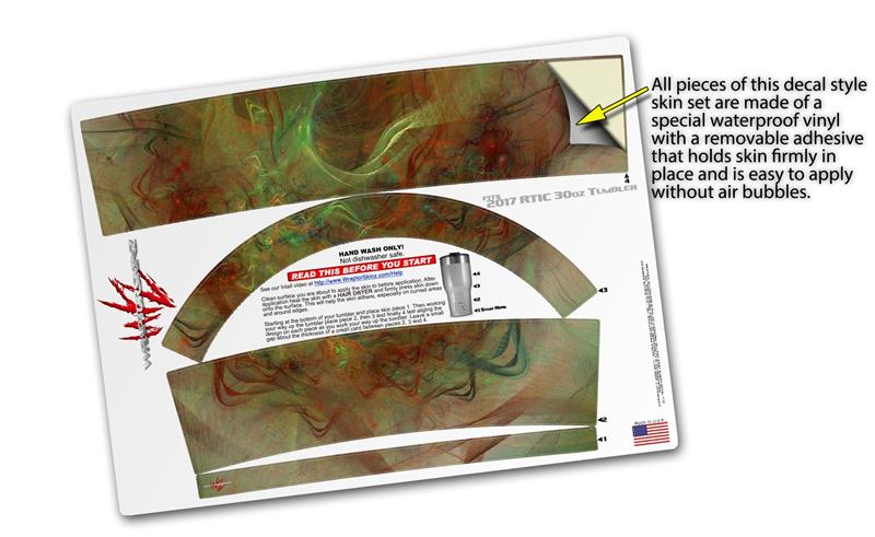 WraptorSkinz® skin wraps for 2017 RTIC Tumblers are printed using superb photo quality designs and vibrant colors printed with special fade resistant inks that last even in direct sun for years. WraptorSkinz® are a composite of two layers of commercial grade materials. The bottom layer is a soft, flexible vinyl with a special removable adhesive that is easily positioned, applied without air bubbles. Next we print the bottom layer with UV protected, fade resistant inks that deliver superb photo quality designs in vibrant colors. Finally we bond a professional grade laminate over the entire skin adding a glossy protective finish.