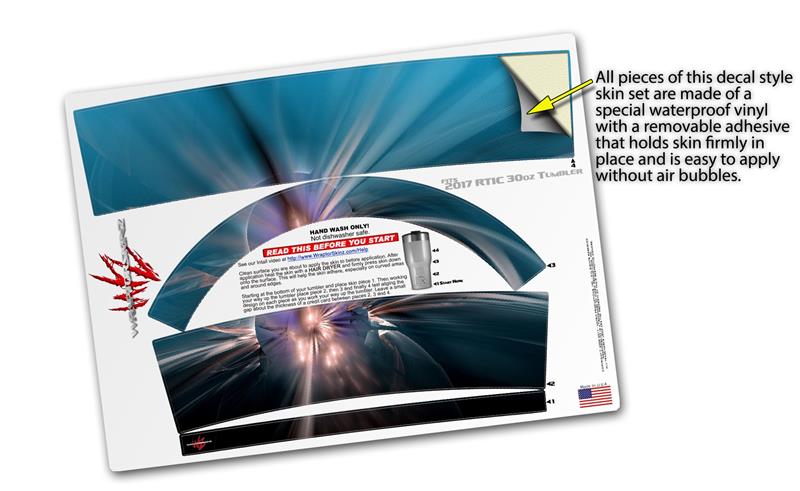 WraptorSkinz® skin wraps for 2017 RTIC Tumblers are printed using superb photo quality designs and vibrant colors printed with special fade resistant inks that last even in direct sun for years. WraptorSkinz® are a composite of two layers of commercial grade materials. The bottom layer is a soft, flexible vinyl with a special removable adhesive that is easily positioned, applied without air bubbles. Next we print the bottom layer with UV protected, fade resistant inks that deliver superb photo quality designs in vibrant colors. Finally we bond a professional grade laminate over the entire skin adding a glossy protective finish.