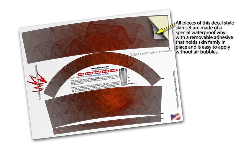 WraptorSkinz® skin wraps for 2017 RTIC Tumblers are printed using superb photo quality designs and vibrant colors printed with special fade resistant inks that last even in direct sun for years. WraptorSkinz® are a composite of two layers of commercial grade materials. The bottom layer is a soft, flexible vinyl with a special removable adhesive that is easily positioned, applied without air bubbles. Next we print the bottom layer with UV protected, fade resistant inks that deliver superb photo quality designs in vibrant colors. Finally we bond a professional grade laminate over the entire skin adding a glossy protective finish.
