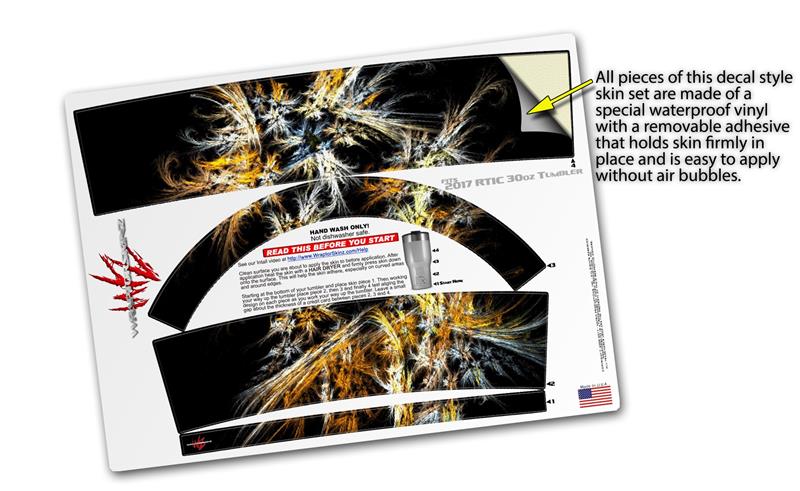 WraptorSkinz® skin wraps for 2017 RTIC Tumblers are printed using superb photo quality designs and vibrant colors printed with special fade resistant inks that last even in direct sun for years. WraptorSkinz® are a composite of two layers of commercial grade materials. The bottom layer is a soft, flexible vinyl with a special removable adhesive that is easily positioned, applied without air bubbles. Next we print the bottom layer with UV protected, fade resistant inks that deliver superb photo quality designs in vibrant colors. Finally we bond a professional grade laminate over the entire skin adding a glossy protective finish.