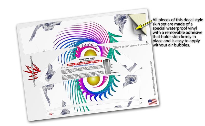 WraptorSkinz® skin wraps for 2017 RTIC Tumblers are printed using superb photo quality designs and vibrant colors printed with special fade resistant inks that last even in direct sun for years. WraptorSkinz® are a composite of two layers of commercial grade materials. The bottom layer is a soft, flexible vinyl with a special removable adhesive that is easily positioned, applied without air bubbles. Next we print the bottom layer with UV protected, fade resistant inks that deliver superb photo quality designs in vibrant colors. Finally we bond a professional grade laminate over the entire skin adding a glossy protective finish.