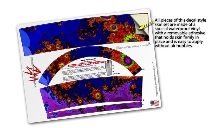 WraptorSkinz® skin wraps for 2017 RTIC Tumblers are printed using superb photo quality designs and vibrant colors printed with special fade resistant inks that last even in direct sun for years. WraptorSkinz® are a composite of two layers of commercial grade materials. The bottom layer is a soft, flexible vinyl with a special removable adhesive that is easily positioned, applied without air bubbles. Next we print the bottom layer with UV protected, fade resistant inks that deliver superb photo quality designs in vibrant colors. Finally we bond a professional grade laminate over the entire skin adding a glossy protective finish.