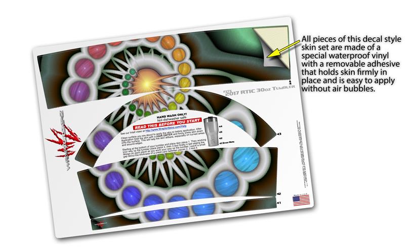 WraptorSkinz® skin wraps for 2017 RTIC Tumblers are printed using superb photo quality designs and vibrant colors printed with special fade resistant inks that last even in direct sun for years. WraptorSkinz® are a composite of two layers of commercial grade materials. The bottom layer is a soft, flexible vinyl with a special removable adhesive that is easily positioned, applied without air bubbles. Next we print the bottom layer with UV protected, fade resistant inks that deliver superb photo quality designs in vibrant colors. Finally we bond a professional grade laminate over the entire skin adding a glossy protective finish.