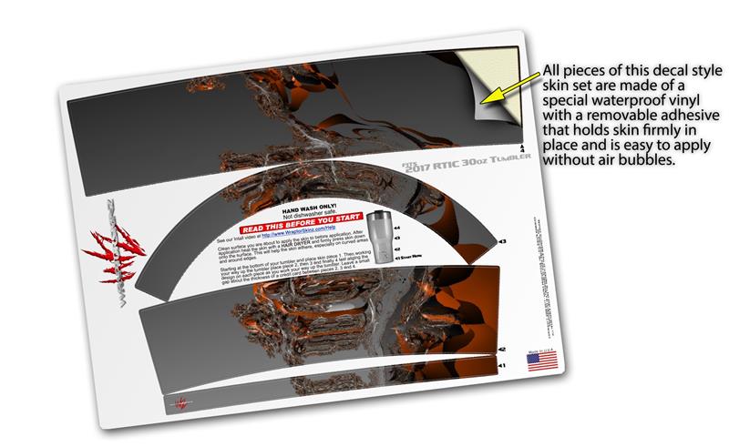 WraptorSkinz® skin wraps for 2017 RTIC Tumblers are printed using superb photo quality designs and vibrant colors printed with special fade resistant inks that last even in direct sun for years. WraptorSkinz® are a composite of two layers of commercial grade materials. The bottom layer is a soft, flexible vinyl with a special removable adhesive that is easily positioned, applied without air bubbles. Next we print the bottom layer with UV protected, fade resistant inks that deliver superb photo quality designs in vibrant colors. Finally we bond a professional grade laminate over the entire skin adding a glossy protective finish.