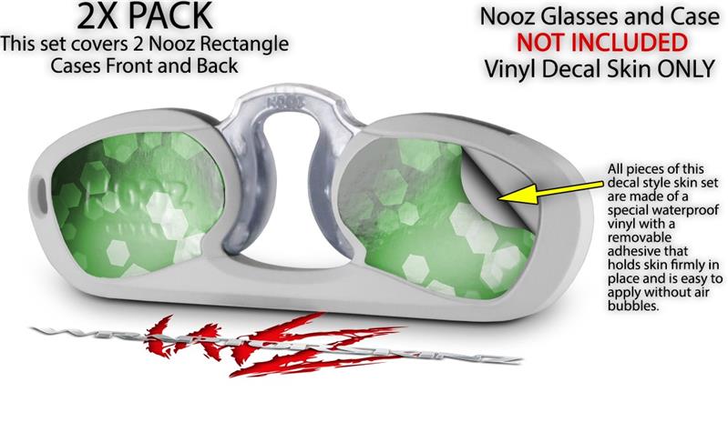 Decal Style Vinyl Skin Wrap 2 Pack for Nooz Glasses Rectangle Case Bokeh Hex Green (NOOZ NOT INCLUDED) by WraptorSkinz