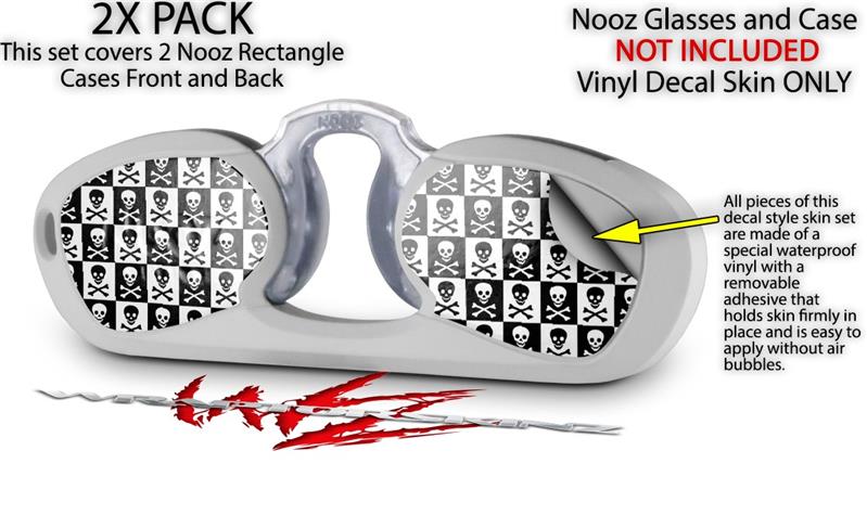 Decal Style Vinyl Skin Wrap 2 Pack for Nooz Glasses Rectangle Case Skull Checkerboard (NOOZ NOT INCLUDED) by WraptorSkinz