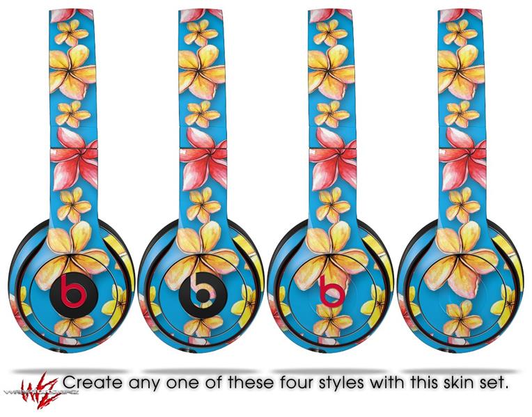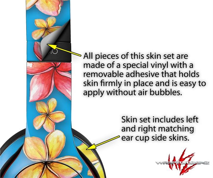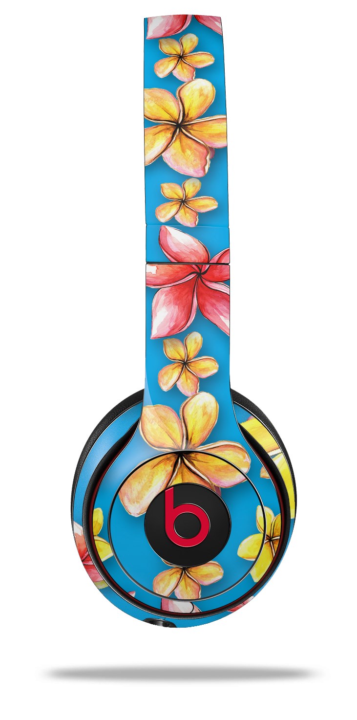 WraptorSkinz Skin Decal Wrap compatible with Beats Solo 2 and Solo 3 Wireless Headphones Beach Flowers Blue Medium (HEADPHONES NOT INCLUDED)