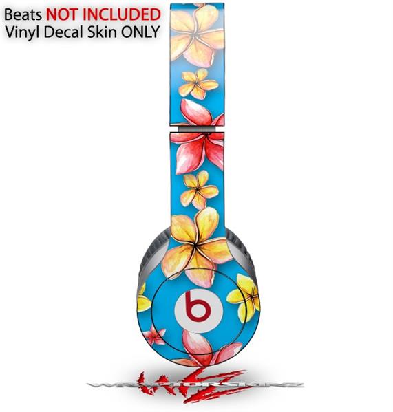WraptorSkinz Skin Decal Wrap compatible with Beats Solo HD (Original) Beach Flowers Blue Medium (HEADPHONES NOT INCLUDED)