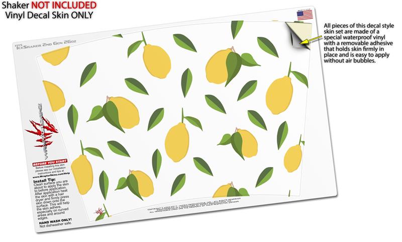Skin Wrap Decal for IceShaker 2nd Gen 26oz Lemon Leaves White (SHAKER NOT INCLUDED)