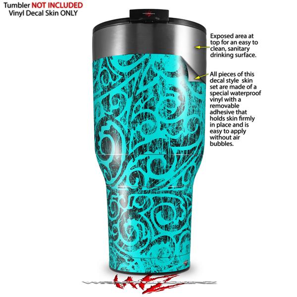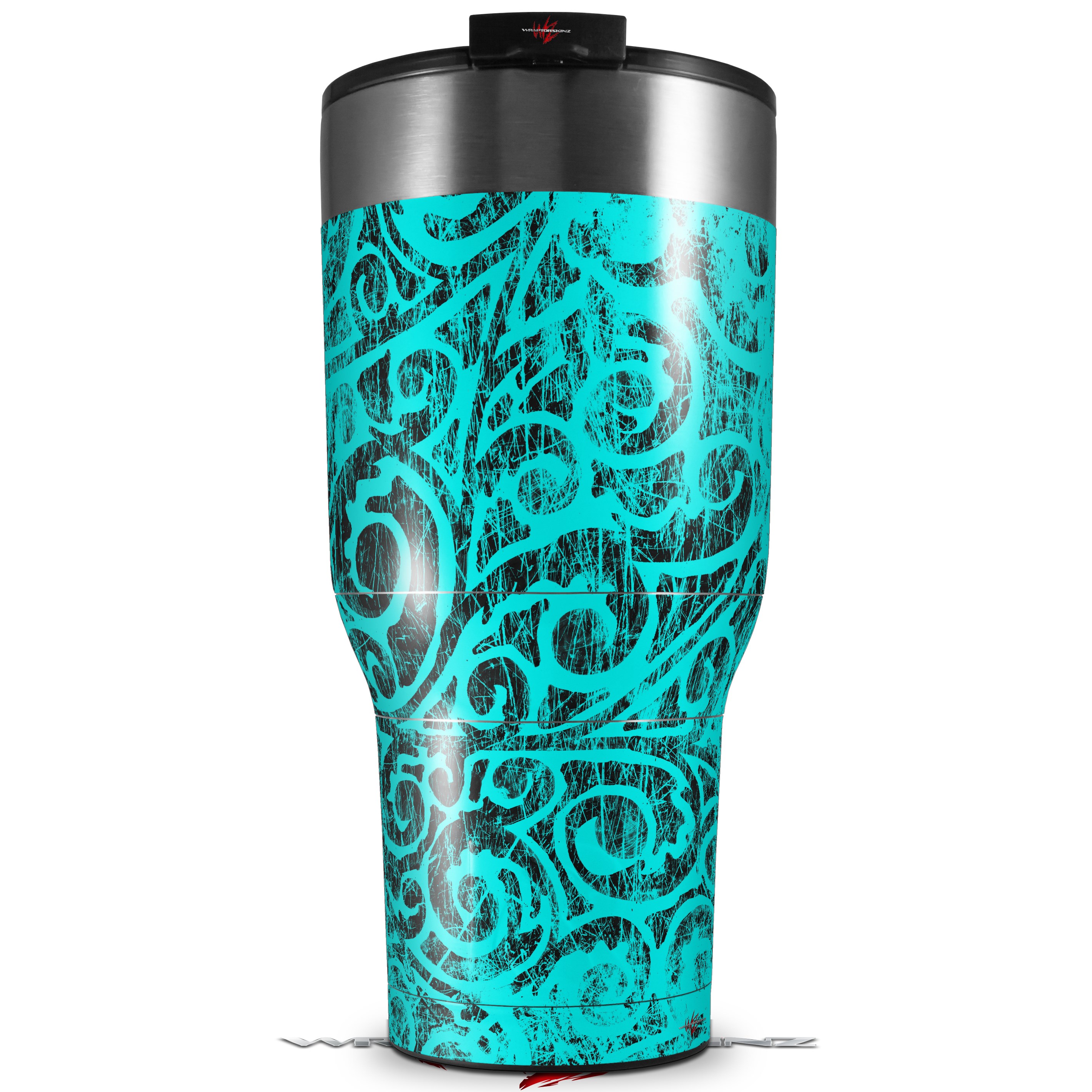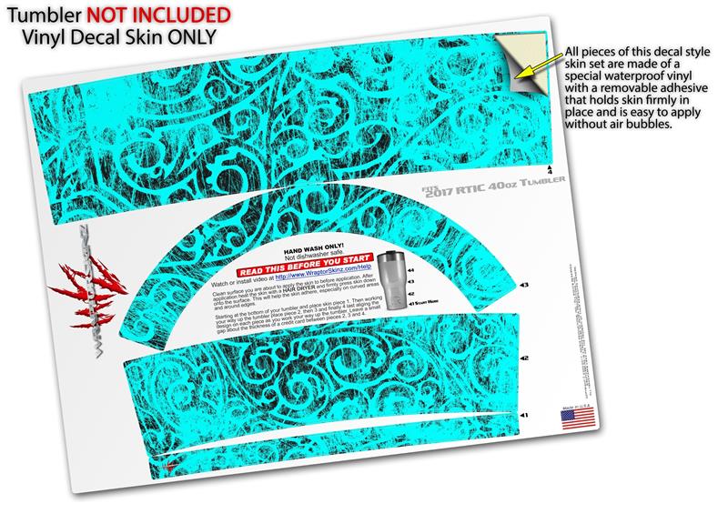 Skin Wrap Decal for 2017 RTIC Tumblers 40oz Folder Doodles Neon Teal (TUMBLER NOT INCLUDED)