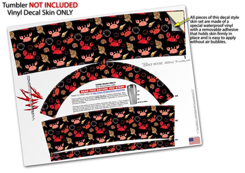 Skin Wrap Decal for 2017 RTIC Tumblers 40oz Crabs and Shells Black (TUMBLER NOT INCLUDED)