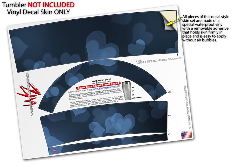 Skin Wrap Decal for 2017 RTIC Tumblers 40oz Bokeh Hearts Blue (TUMBLER NOT INCLUDED)