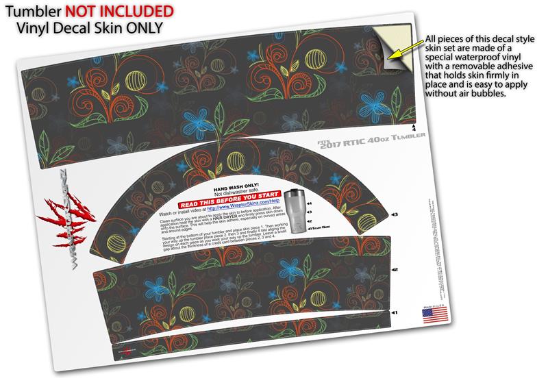 Skin Wrap Decal for 2017 RTIC Tumblers 40oz Flowers Pattern 07 (TUMBLER NOT INCLUDED)