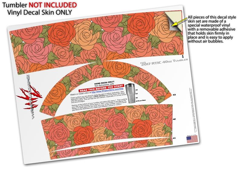 Skin Wrap Decal for 2017 RTIC Tumblers 40oz Flowers Pattern Roses 06 (TUMBLER NOT INCLUDED)