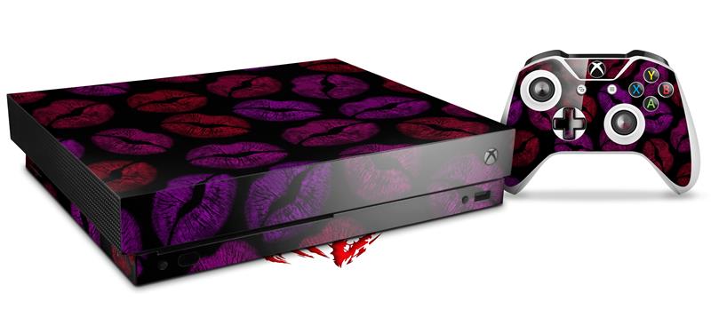 Skin Wrap for XBOX One X Console and Controller Red Pink And Black Lips