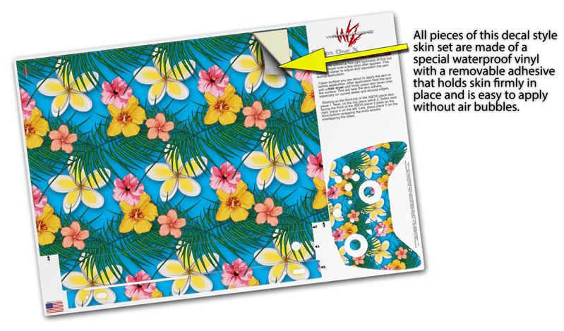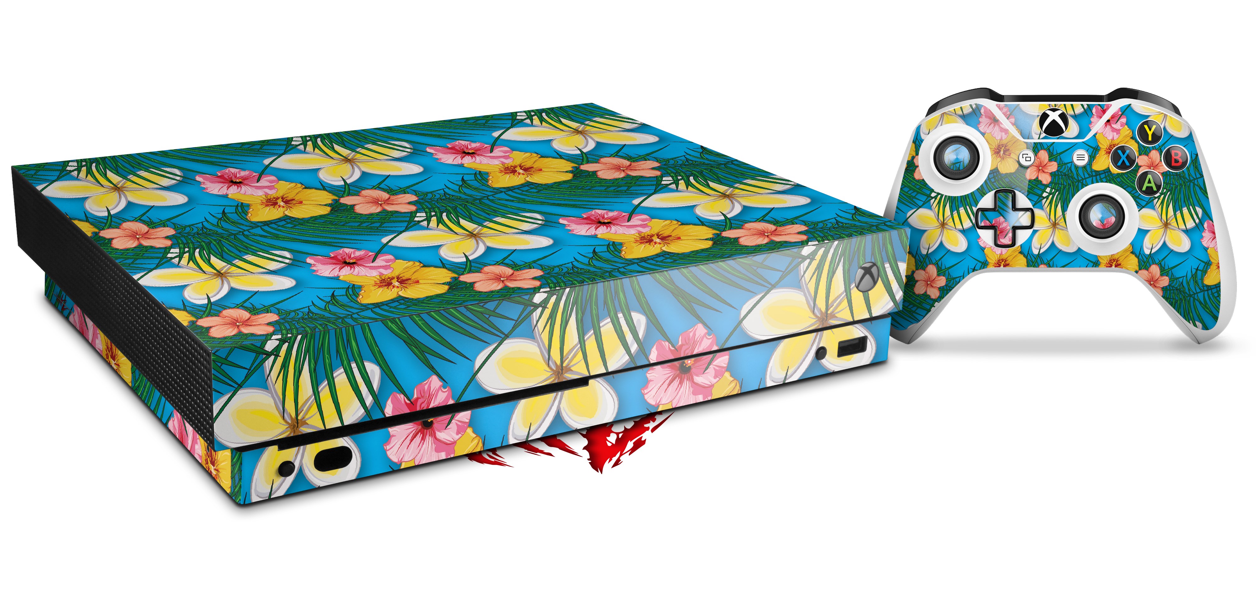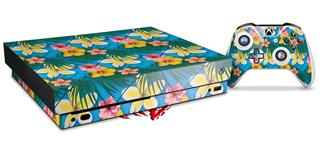 Skin Wrap for XBOX One X Console and Controller Beach Flowers 02 Blue Medium