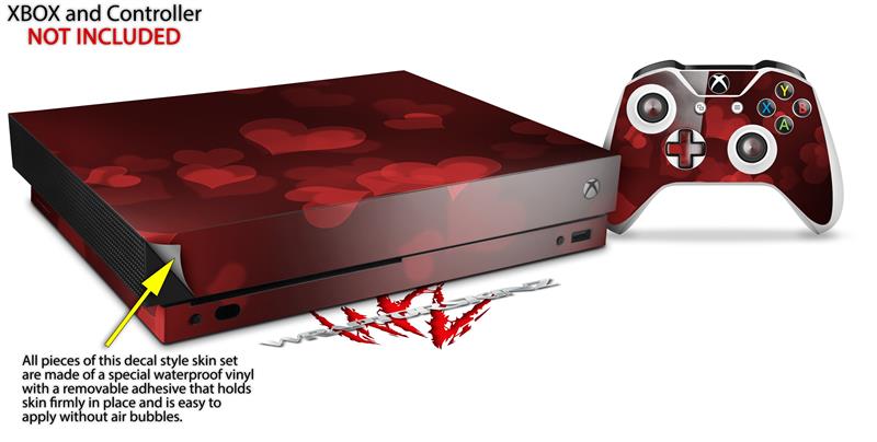 Skin Wrap for XBOX One X Console and Controller Bokeh Hearts Red