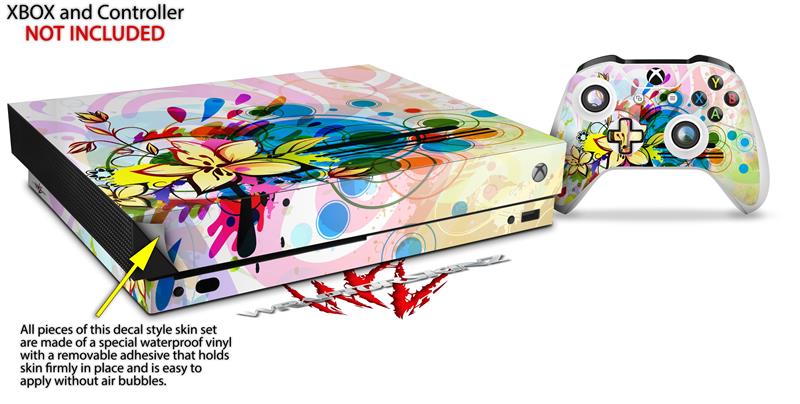Skin Wrap for XBOX One X Console and Controller Floral Splash
