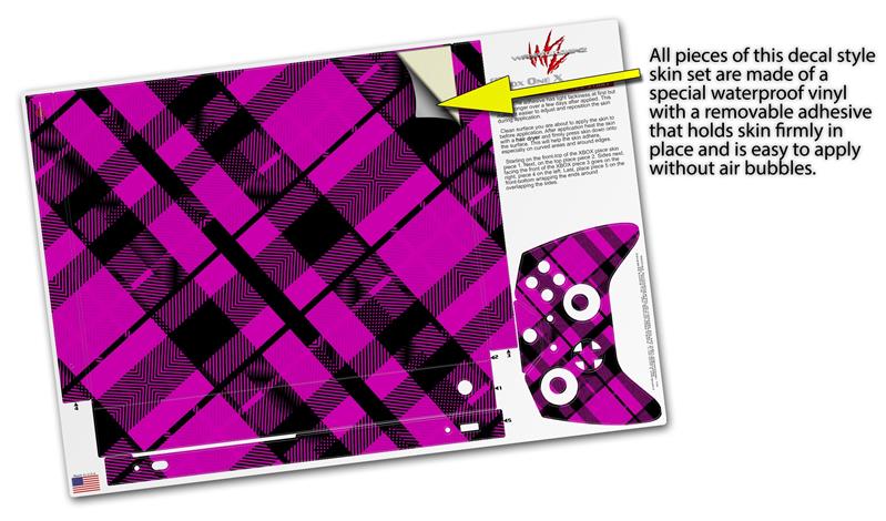 Skin Wrap for XBOX One X Console and Controller Pink Plaid