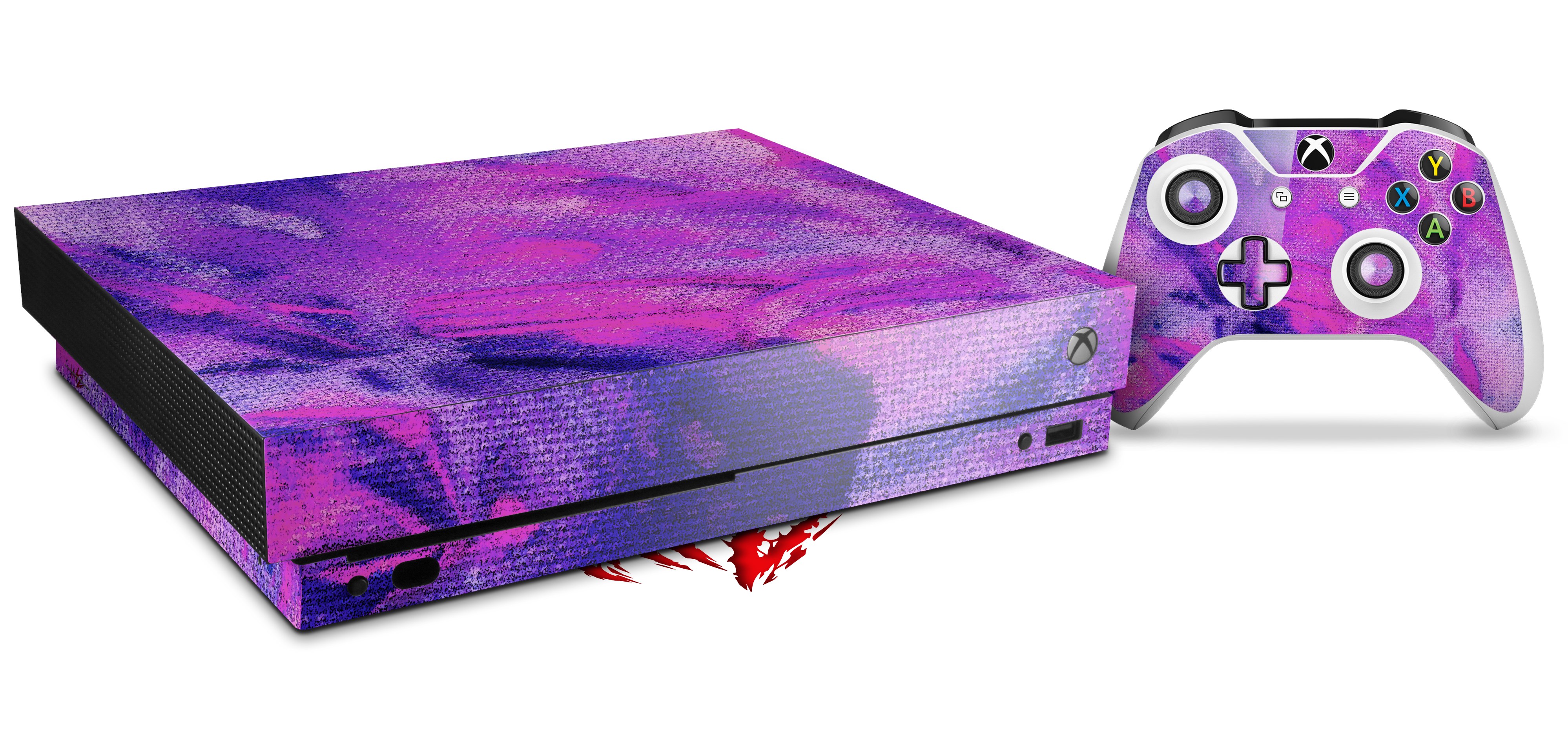 Skin Wrap for XBOX One X Console and Controller Painting Purple Splash