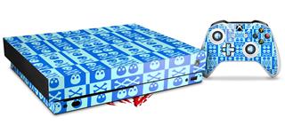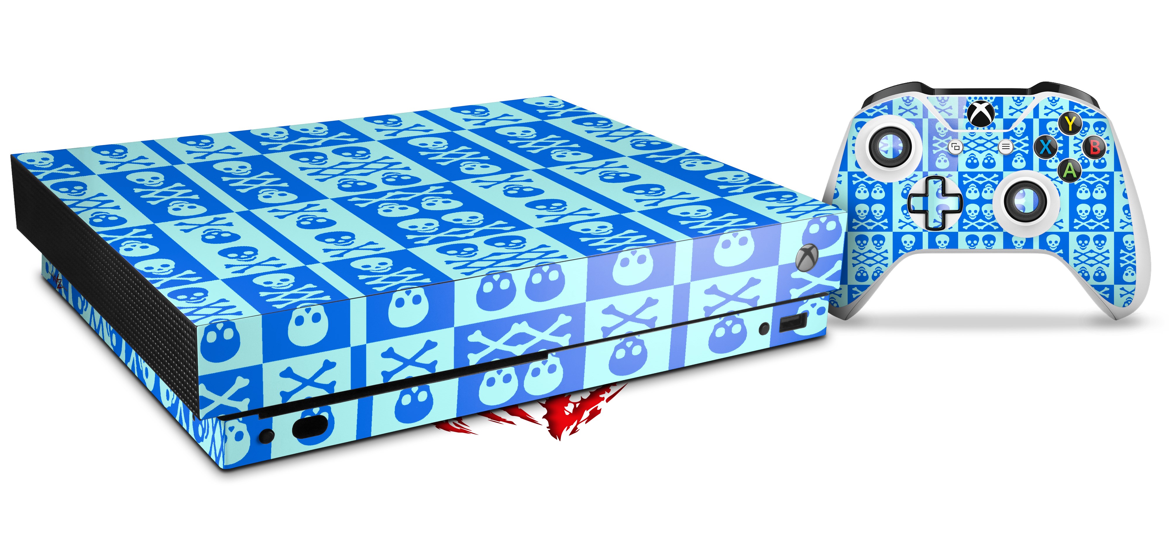 Skin Wrap for XBOX One X Console and Controller Skull And Crossbones Pattern Blue