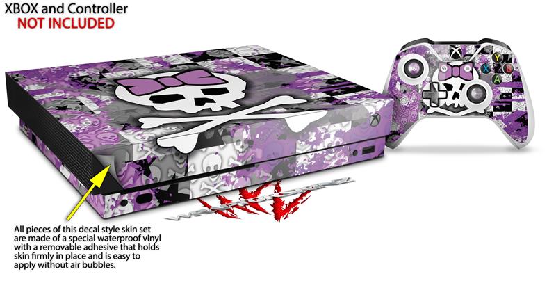 Skin Wrap for XBOX One X Console and Controller Princess Skull Purple