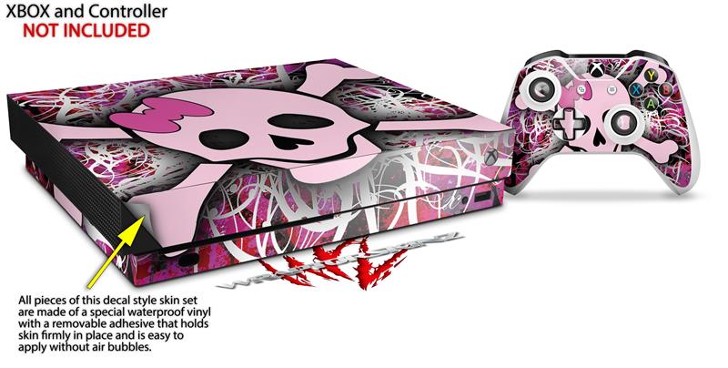 Skin Wrap for XBOX One X Console and Controller Pink Skull
