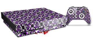Skin Wrap for XBOX One X Console and Controller Splatter Girly Skull Purple
