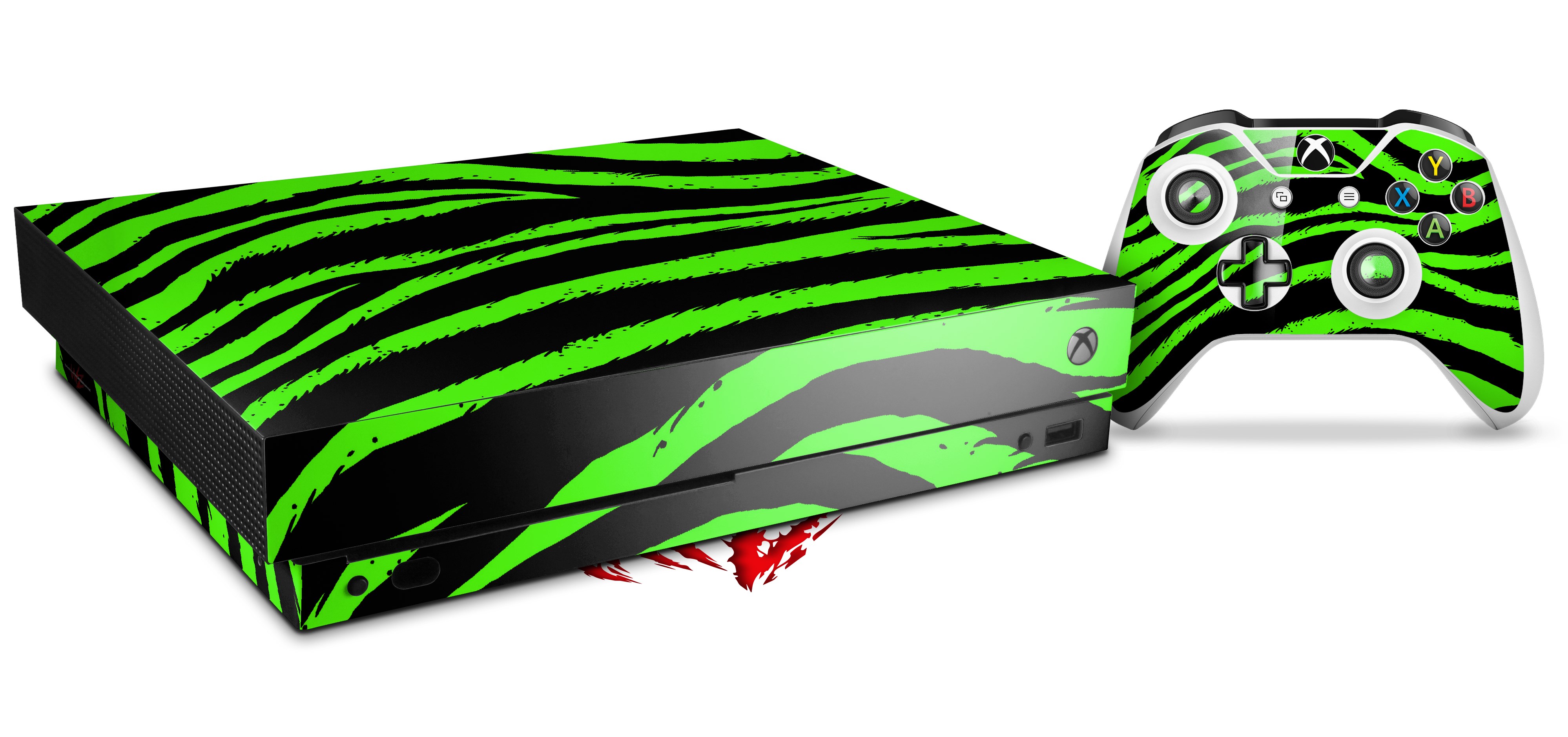 Skin Wrap for XBOX One X Console and Controller Zebra Green