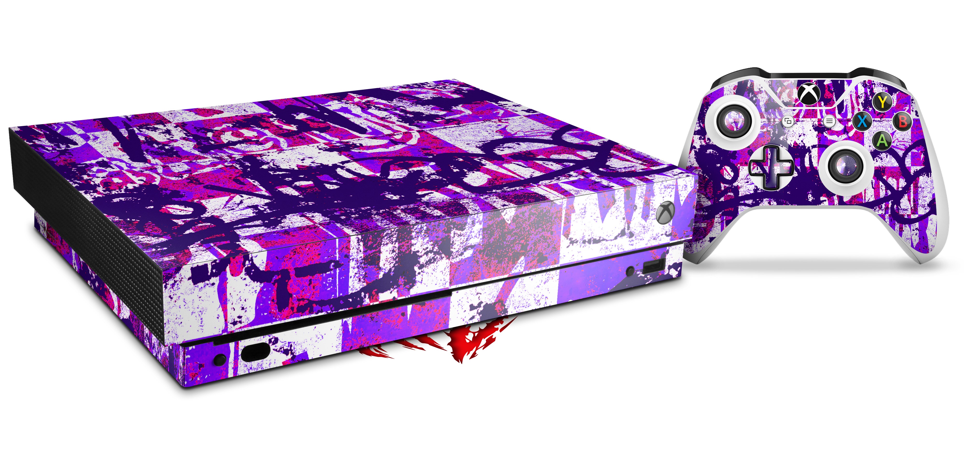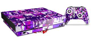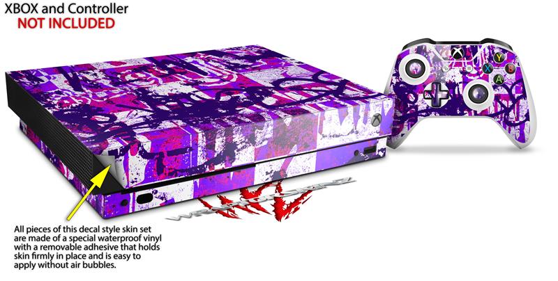 Skin Wrap for XBOX One X Console and Controller Purple Checker Graffiti
