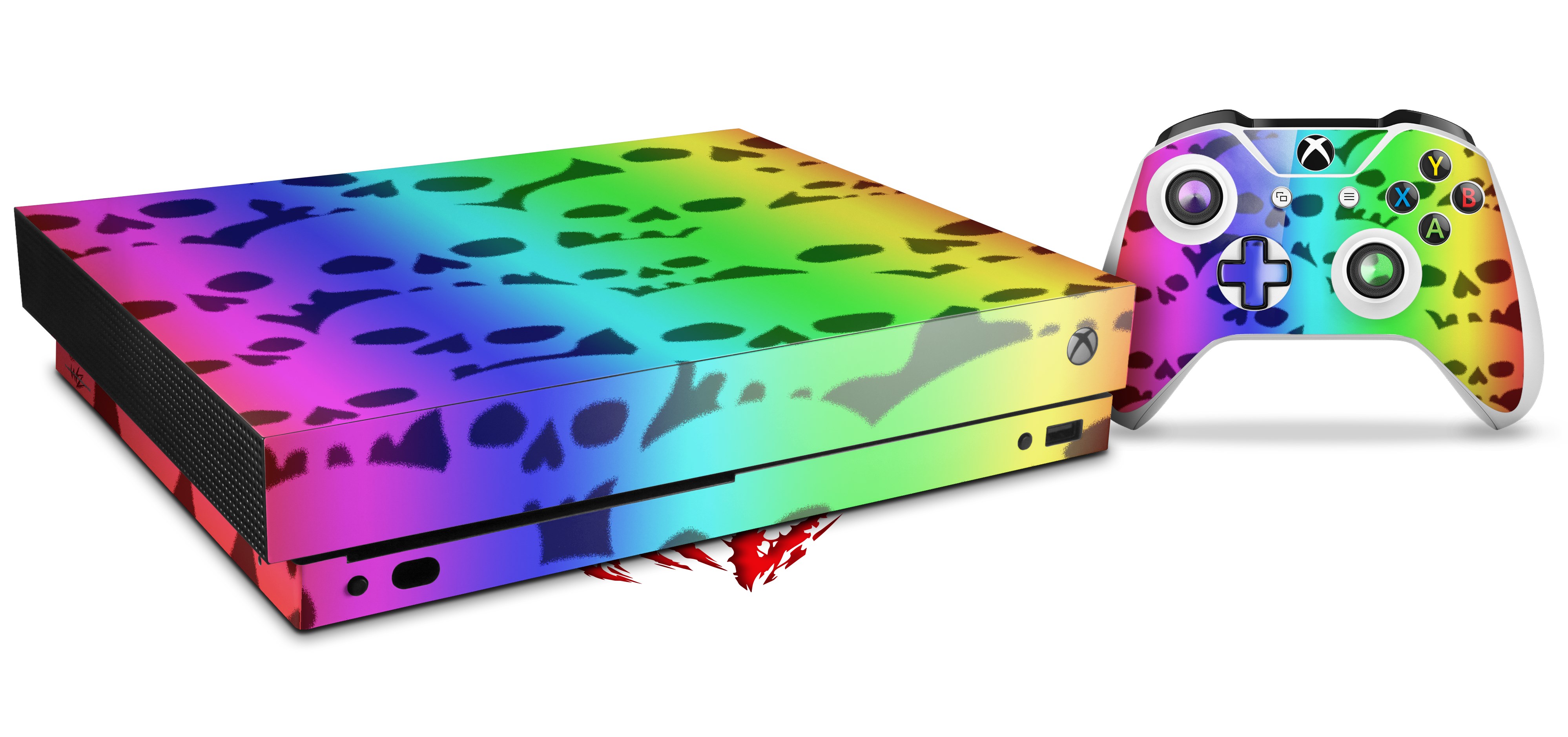 Skin Wrap for XBOX One X Console and Controller Rainbow Skull Collection