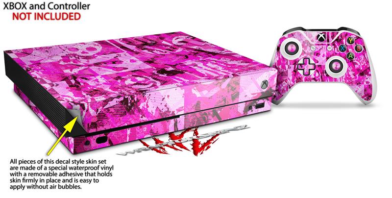 Skin Wrap for XBOX One X Console and Controller Pink Plaid Graffiti