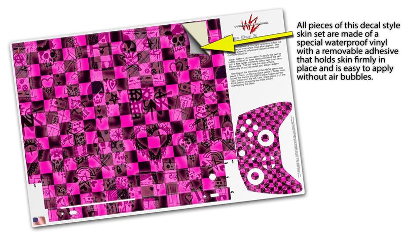 Skin Wrap for XBOX One X Console and Controller Pink Checkerboard Sketches