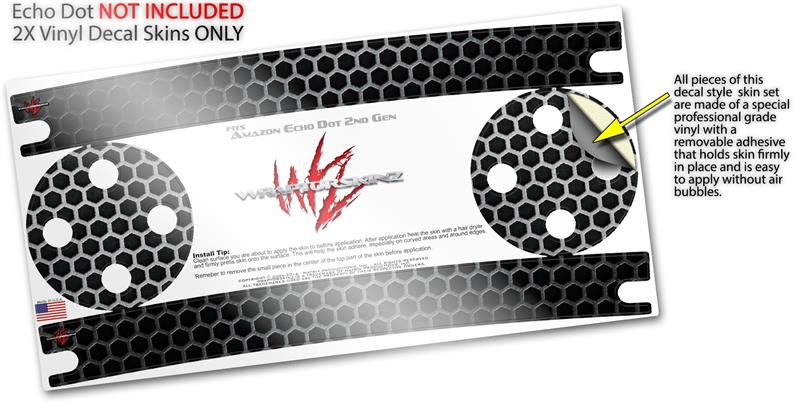 Skin Wrap Decal Set 2 Pack for Amazon Echo Dot 2 - Mesh Metal Hex 02 (2nd Generation ONLY - Echo NOT INCLUDED)